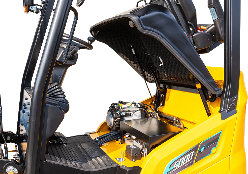 ●La consola de instrumentos completamente cerrada con palancas de control montadas en la parte delantera maximiza el espacio para las piernas.