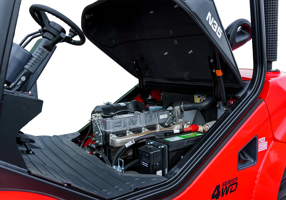 ● El capó del motor de casi 90 grados hace que el mantenimiento diario sea mucho más fácil y se puede acceder a todas las piezas rápidamente.